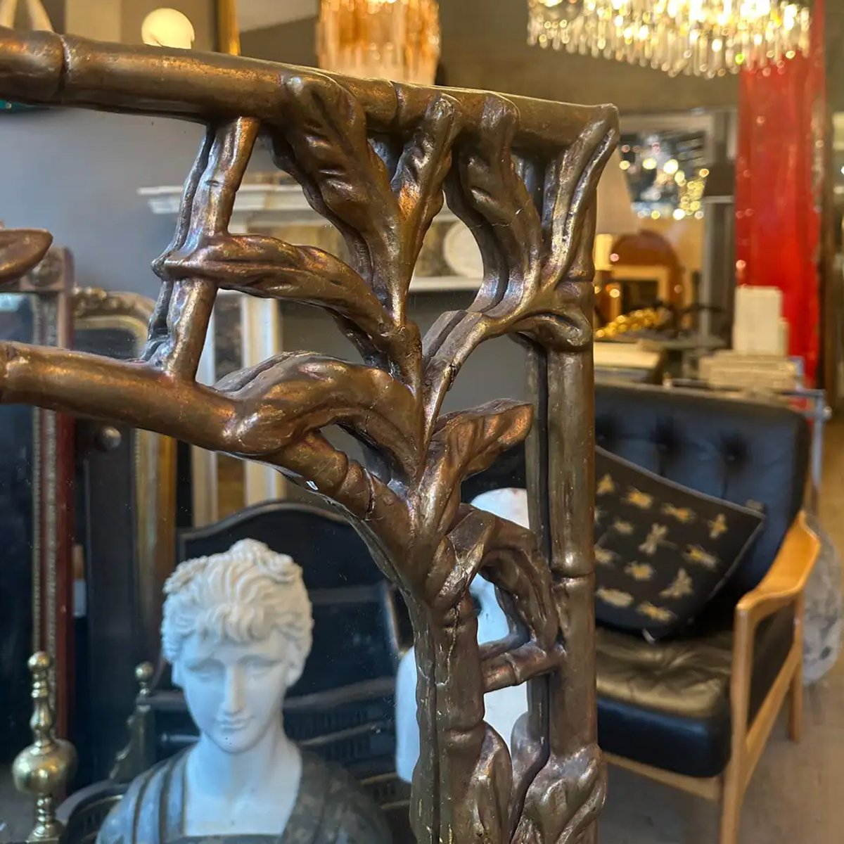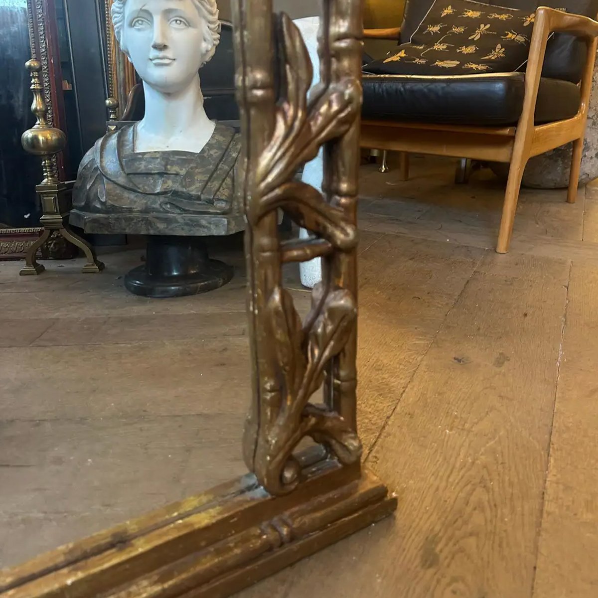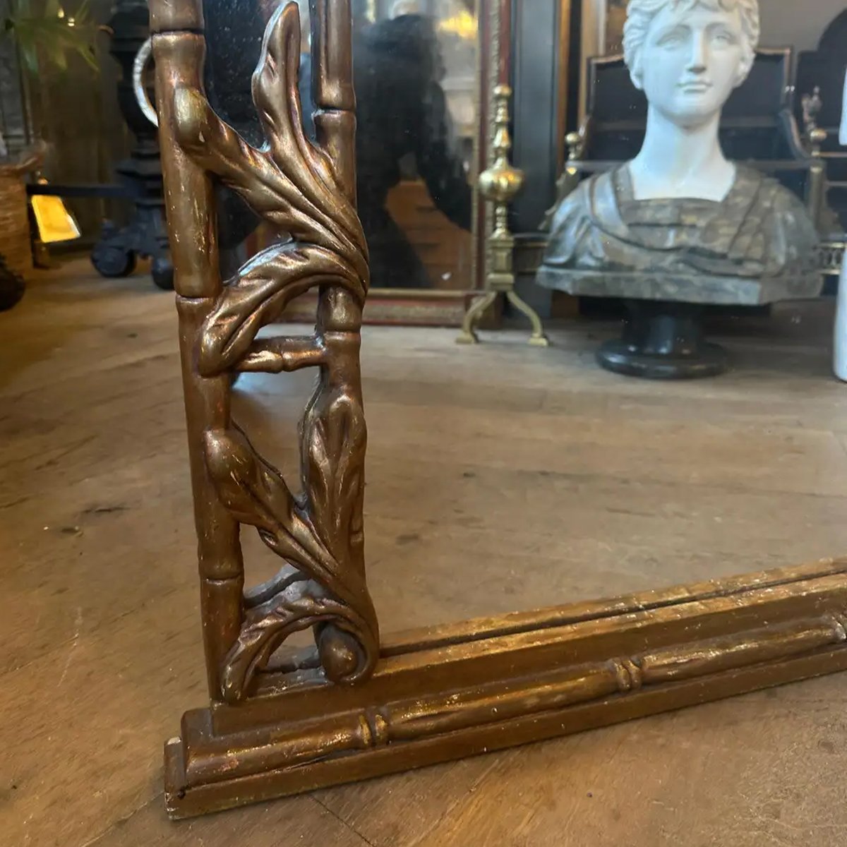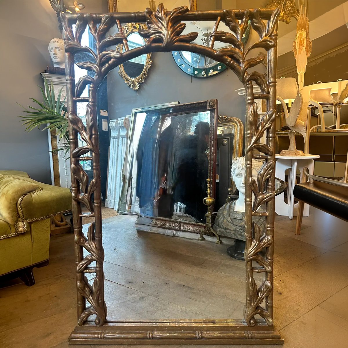 A French Gold gilt carved faux bamboo and foliate mirror, early to mid 20 century French taste of the time. Pretty clear plate, raised on a stepped plinth base. The frame of intertwined foliate and bamboo. Warm and worn gold gilt patina.