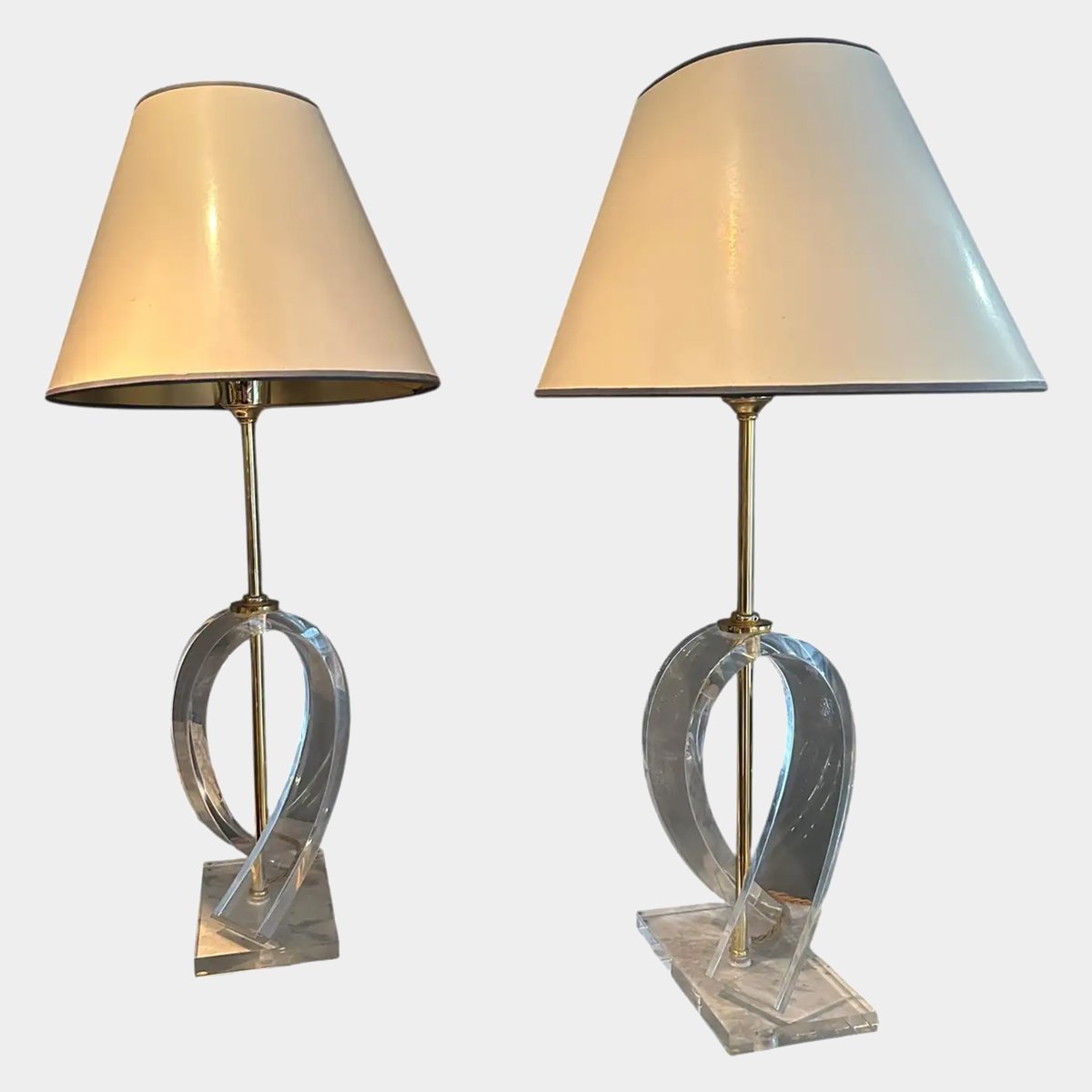 A Pair Of French Lucite And Brass Table Lamps