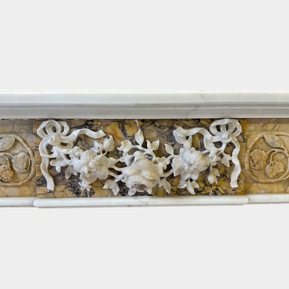 A very well carved Italian 19th century Neo Classical style fireplace in Siena and Statuary marbles.