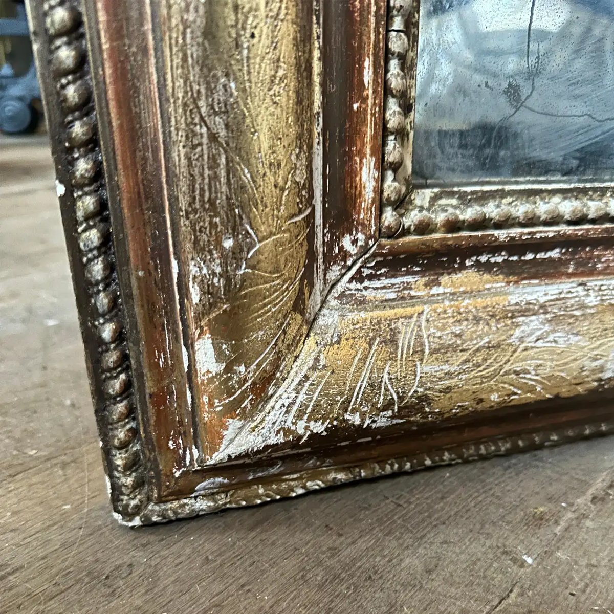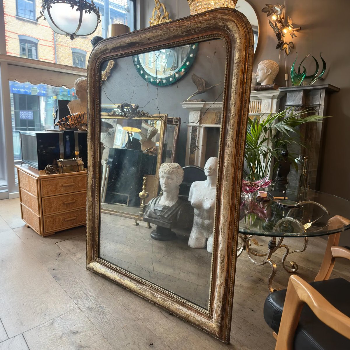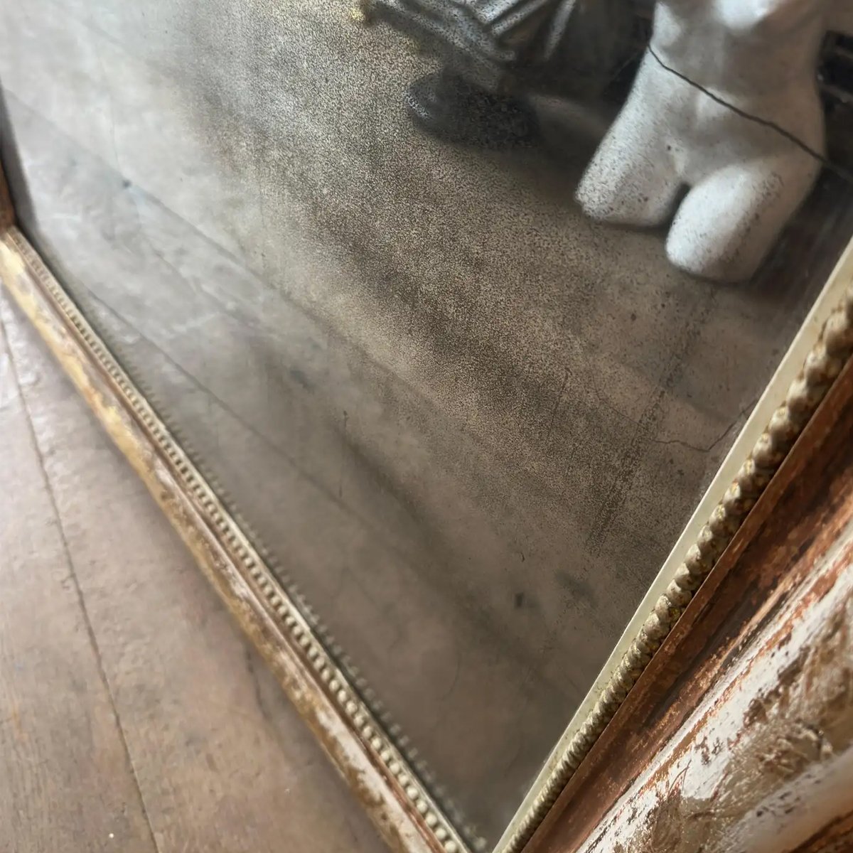 A Large Distressed Antique French Louis Philippe Gold Gilt Mirror
