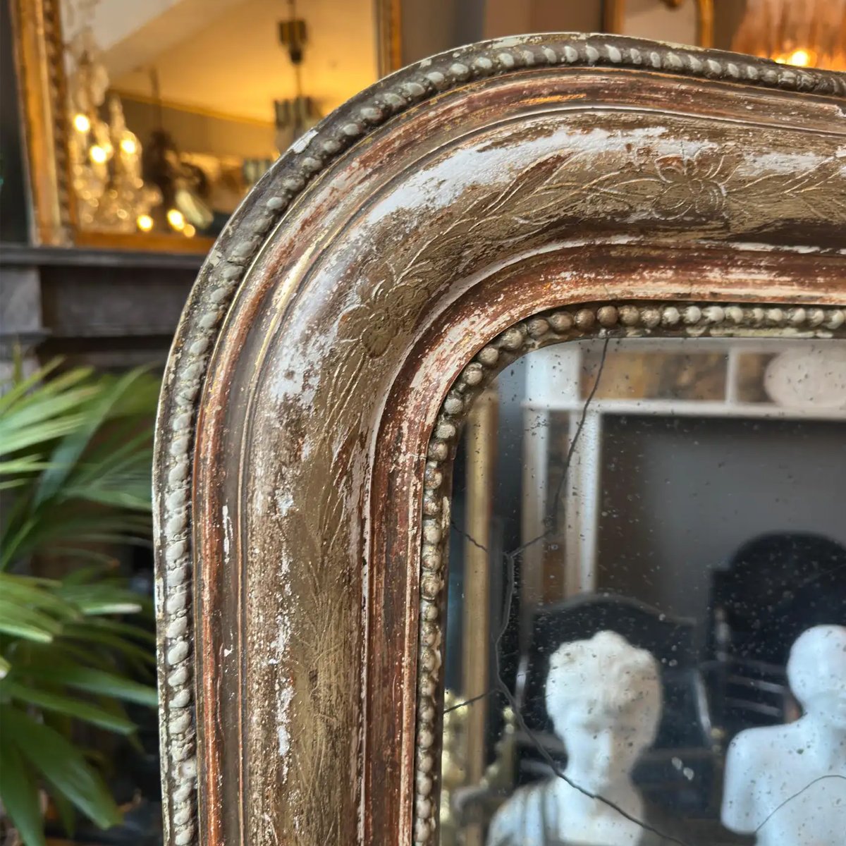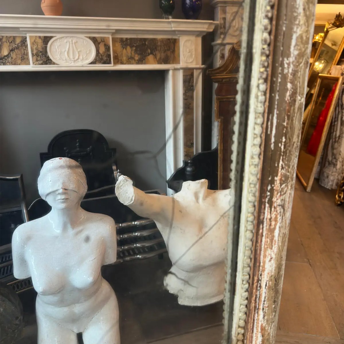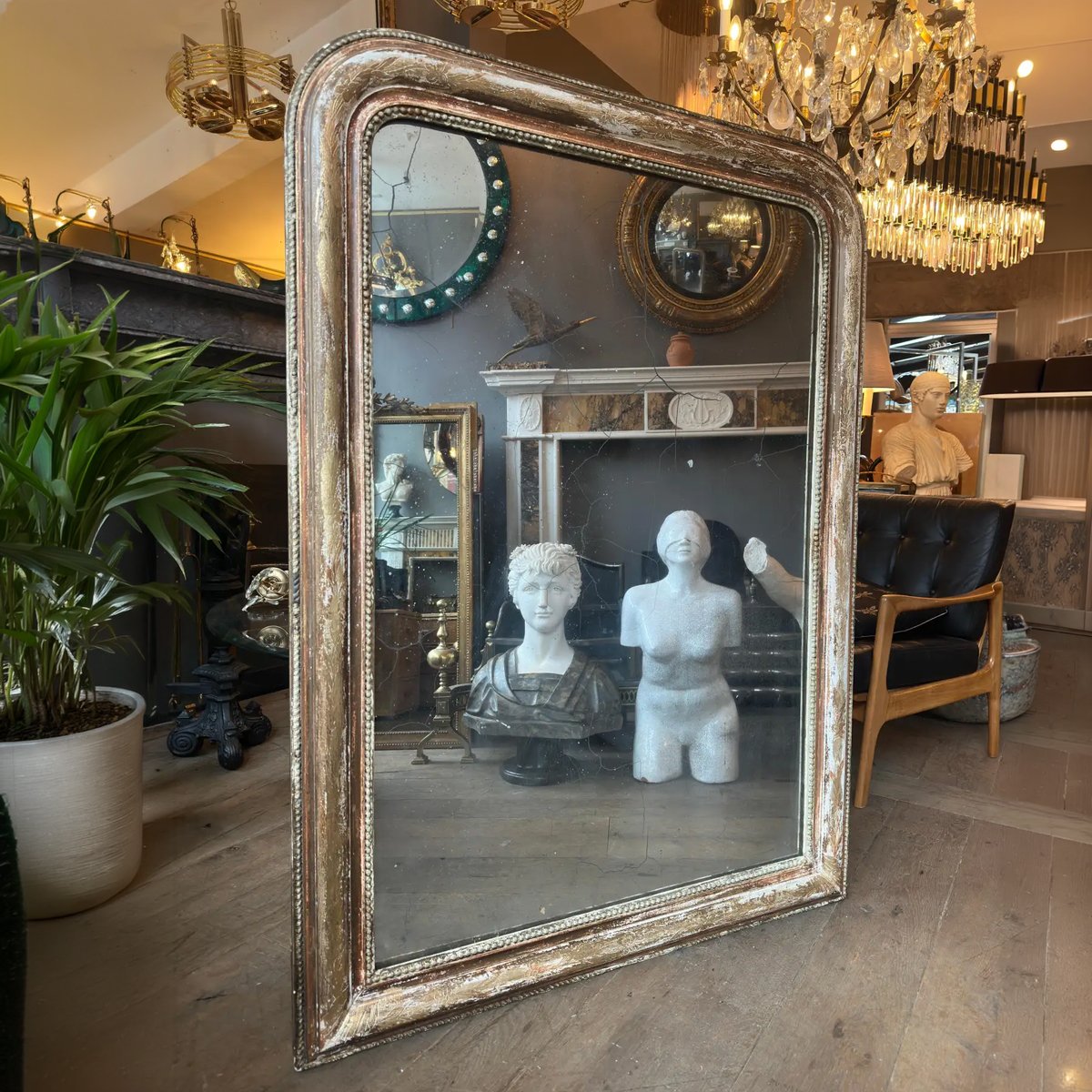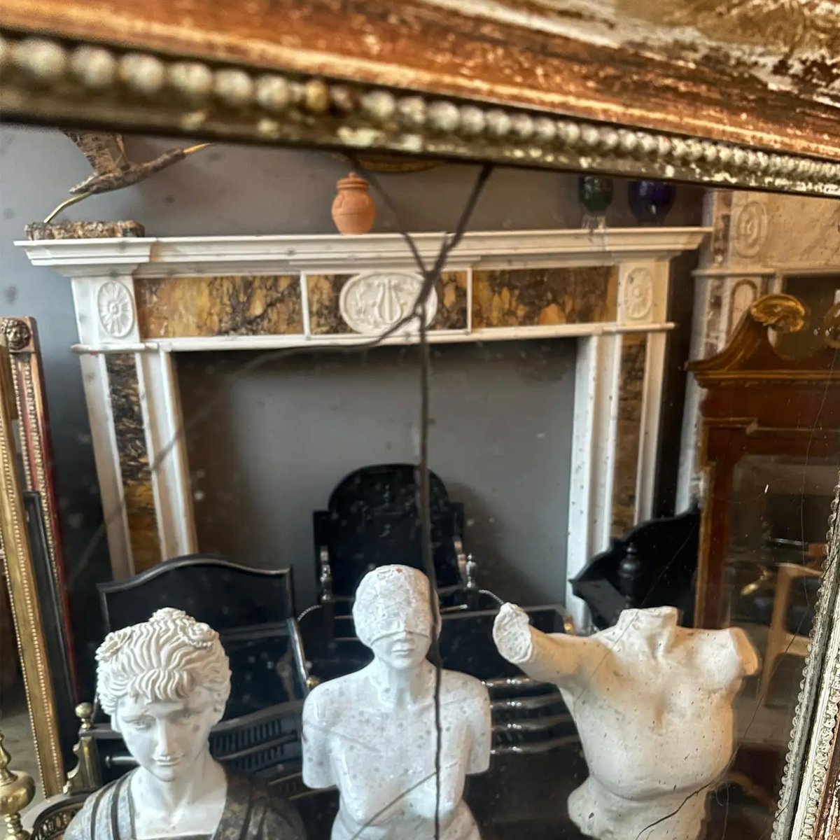 A Large Distressed Antique French Louis Philippe Gold Gilt Mirror