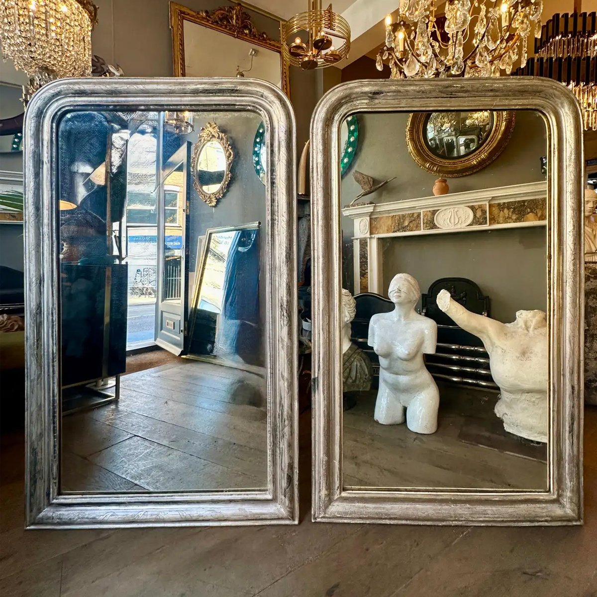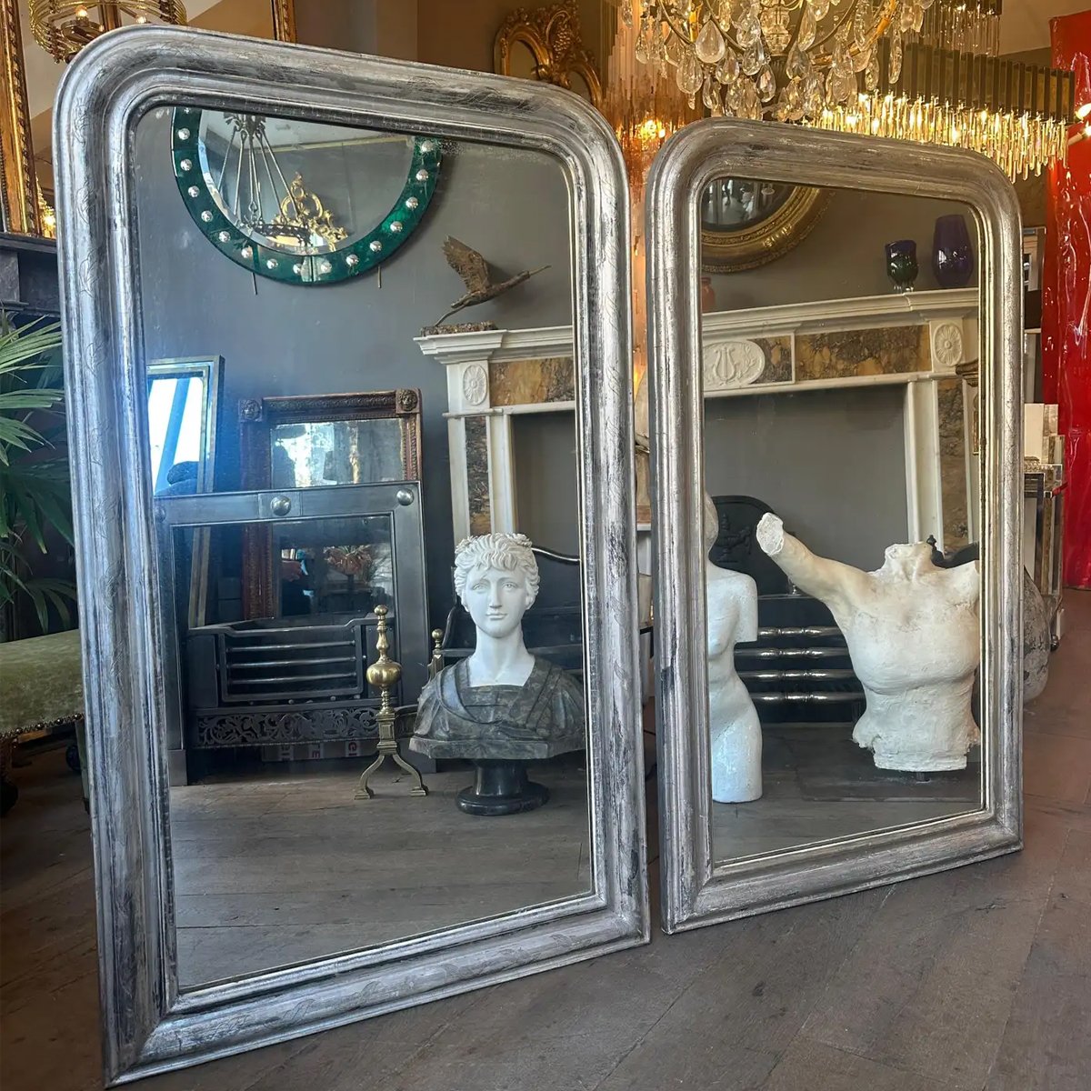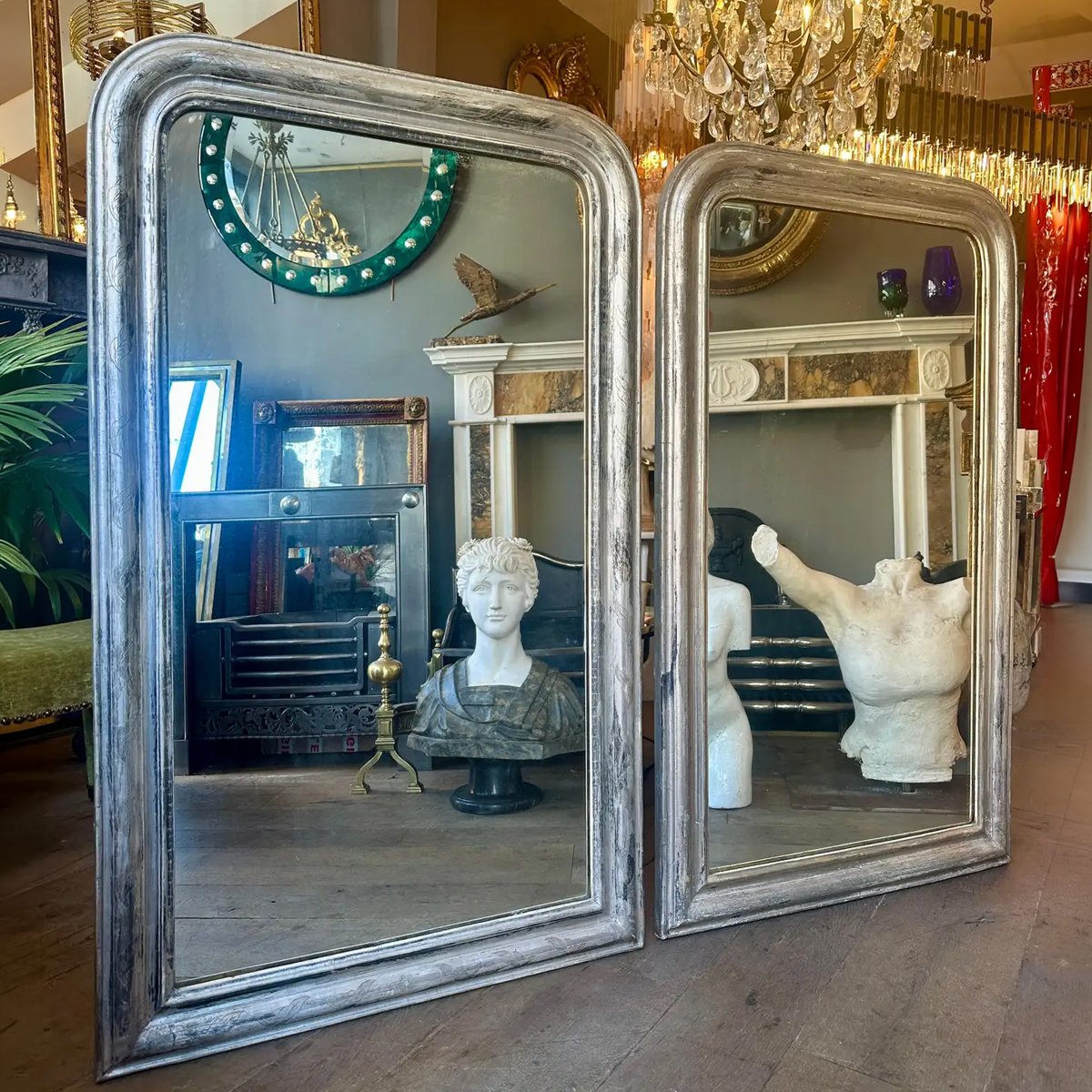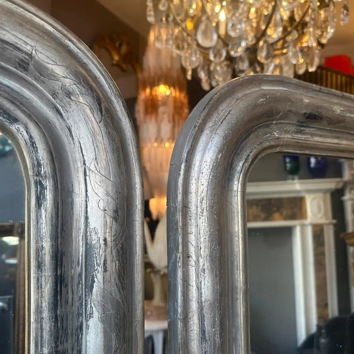 A pair of silver gilt Louis Philippe antique French dome toped mirrors. Circa 1850